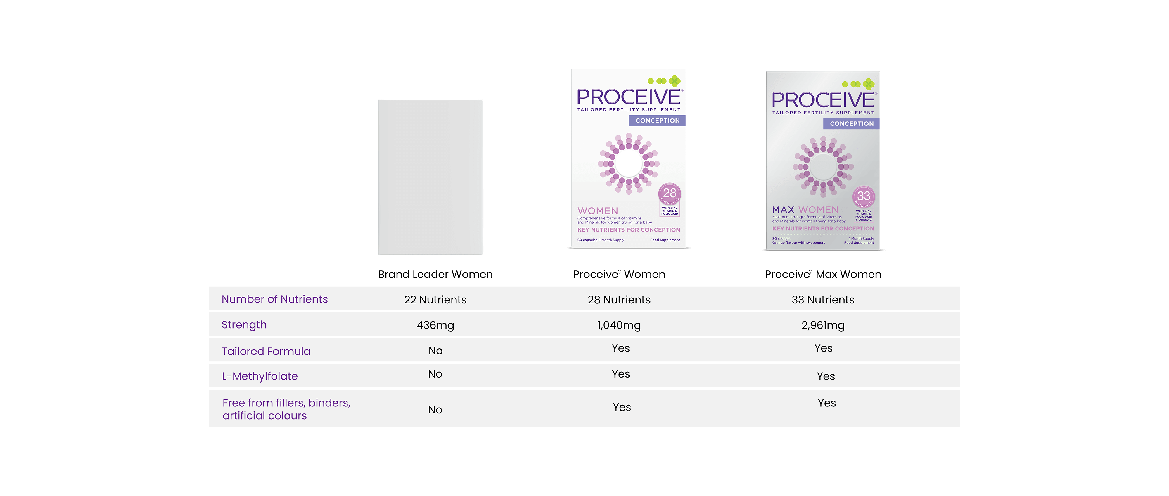 Most conception supplements contain folic acid which needs to be converted into folate. At Proceive we only ever include the highest quality ingredients that are backed by robust clinical evidence.