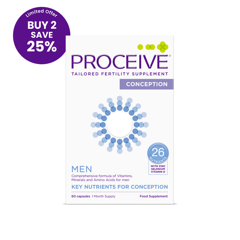 Nutrients play an important role in the development of the sperm cells. A healthy lifestyle, a balanced diet and taking enough exercise are important when trying for a baby. It can be difficult to get all the nutrients you need from your diet in today’s busy world. This is where Proceive® Men may help by providing the extra support needed to support good pre-conception health.