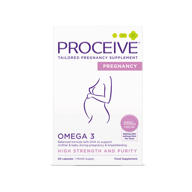 Both EPA and DHA are important, but DHA is particularly important throughout pregnancy and during the early stages of an infant’s life. DHA supports the development of the baby's eyes and brain and it also supports heart health. Fish oil is a safe and natural source of DHA, such as Proceive Omega 3, ideal for pregnancy and breastfeeding. International experts recommend 300-600mg of DHA per day for pregnant and breastfeeding women. You may need a supplement if you are vegetarian or vegan, or do not like oily fish.